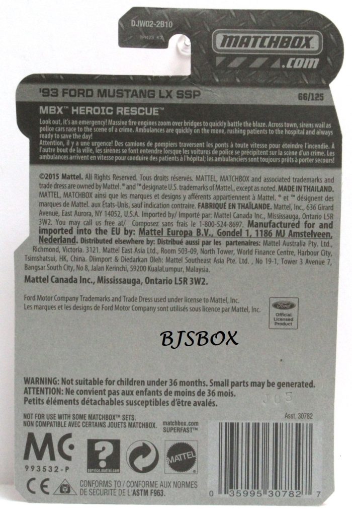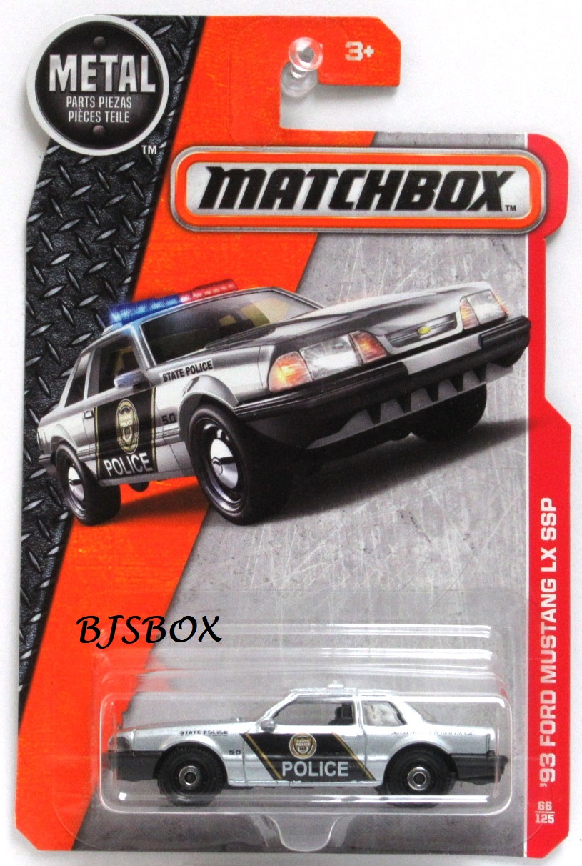 2016 Matchbox ’93 FORD MUSTANG LX SSP Silver Black State Police Car #66/125 MBX Heroic Rescue New