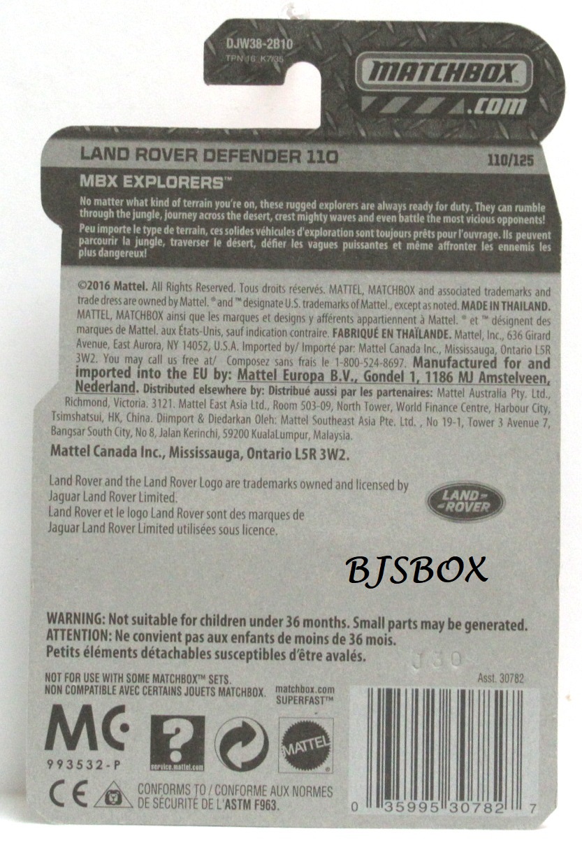 Tags: #111/125, 2016 Matchbox, 4x4, LAND ROVER DEFENDER 110, MBX Explorers, New, Off-Road, SUV, White