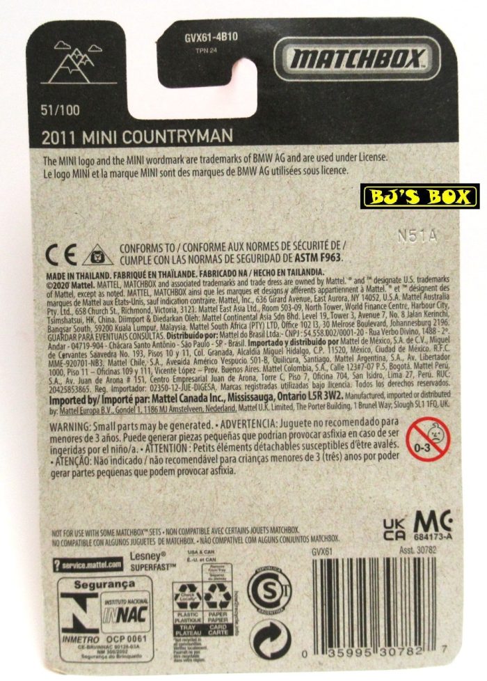 2021 Matchbox 2011 MINI COUNTRYMAN Copper Orange 4dr. BMW #51/100 MBX Off-Road New