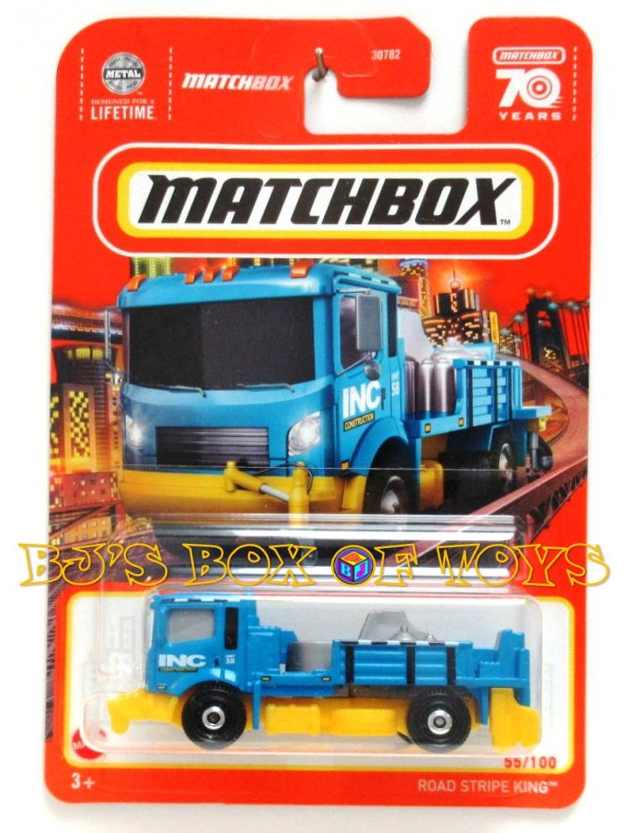 Tags: #55/100, 2023 Matchbox, 70 Years, Blue, Line Painting Truck, New, ROAD STRIPE KING, Yellow