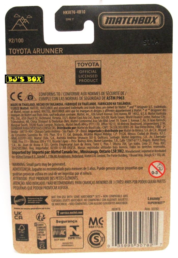 Tags: 2023 Matchbox, 4dr, 4x4, 70 Years, 92/100, Blue, New, SUV, TOYOTA 4RUNNER