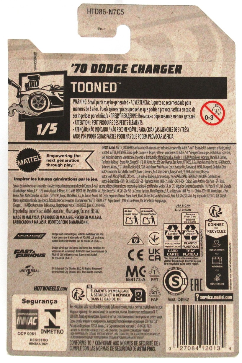 2024 Hot Wheels ’70 DODGE CHARGER Grey Fast and Furious Movie Custom #161 Tooned 1/5 New