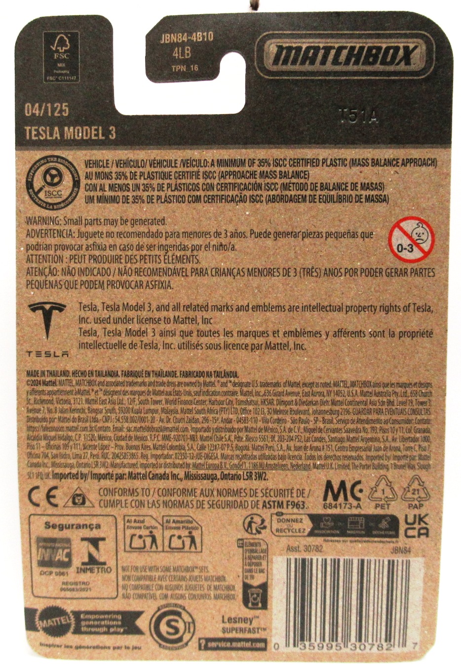 2025 Matchbox TESLA MODEL 3 Red #4 New